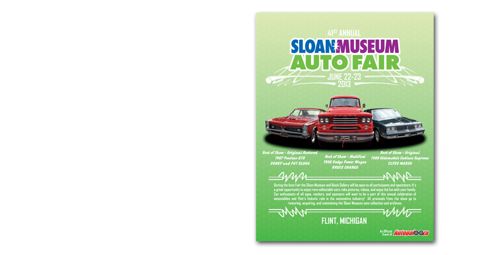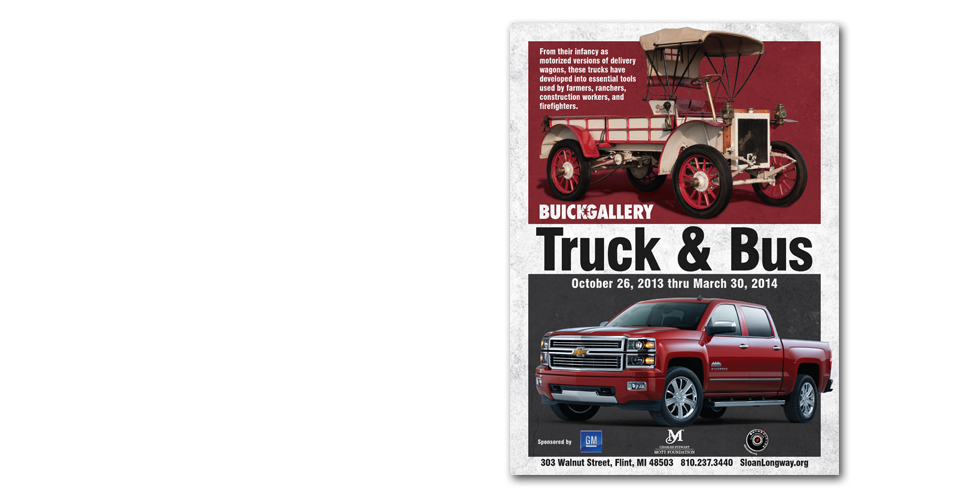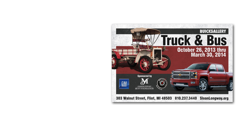 Located in the Flint Cultural Center, the Sloan*Longway group has been a staple in the Flint community for decades. Mark 3 has been chosen to build two promotional packages for them so far; the 2013 Sloan Museum Auto Fair and the Buick Gallery's Truck and Bus exhibit.