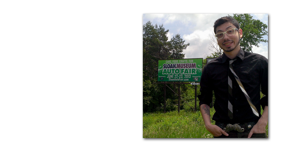 Marcus with the Sloan Museum Auto Fair Billboard